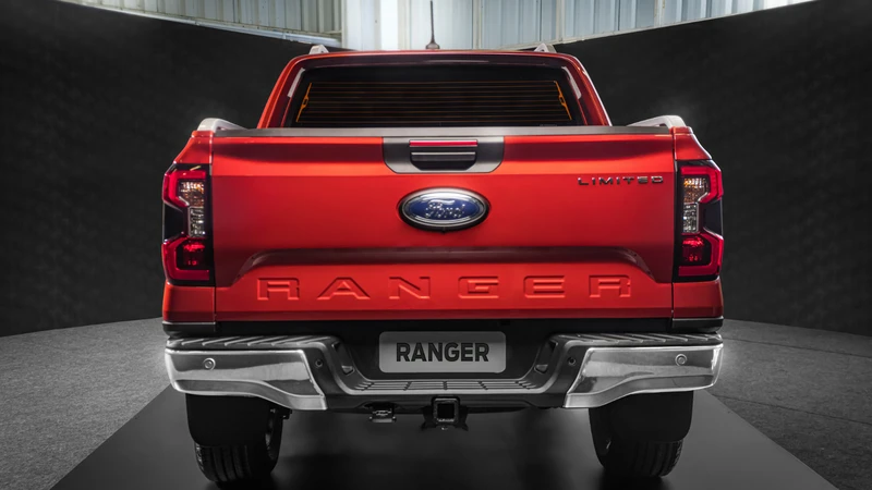 Atrás se lucen la nueva barra aerodinámica, las barras laterales de caja que sirven para atar cosas, el estribo lateral y los LED en las luces. Pero lo más elaborado es el estampado con la palabra Ranger en bajo relieve puesto en el portalón, y hendidura que genera una suerte de spoiler en el borde de portón de carga.