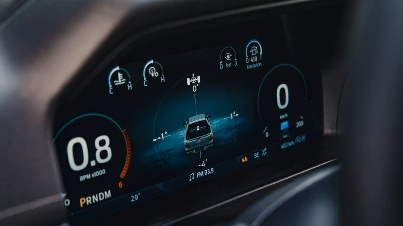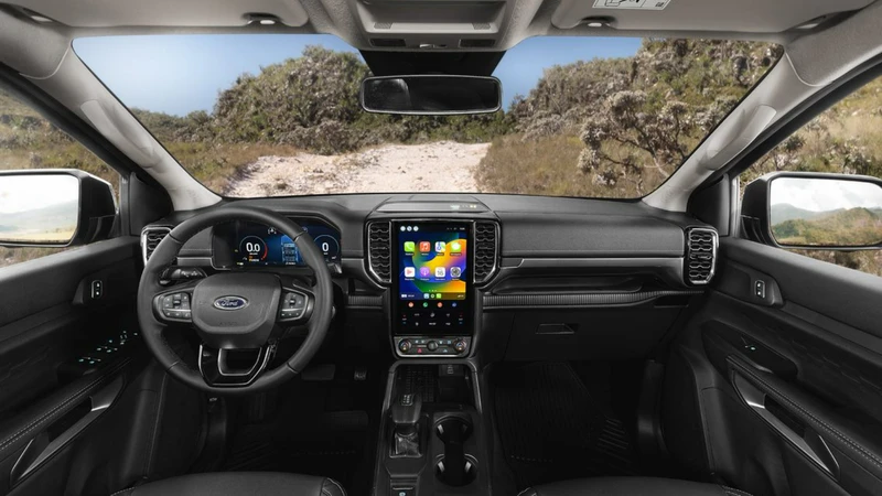 Obvio que lo que más llama la atención de la nueva Ranger son sus pantallas. Para toda la gama, desde la XL hasta la XLT, la pantalla central será de 10 pulgadas, mientras que en esta Limited es de 12” en formato vertical. Desde ella se controla el sistema multimedia SYNC 4. También hay un clúster de instrumentos digital, de 8 pulgadas para XL a XLT, y de 12,4” para la Limited.