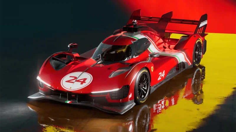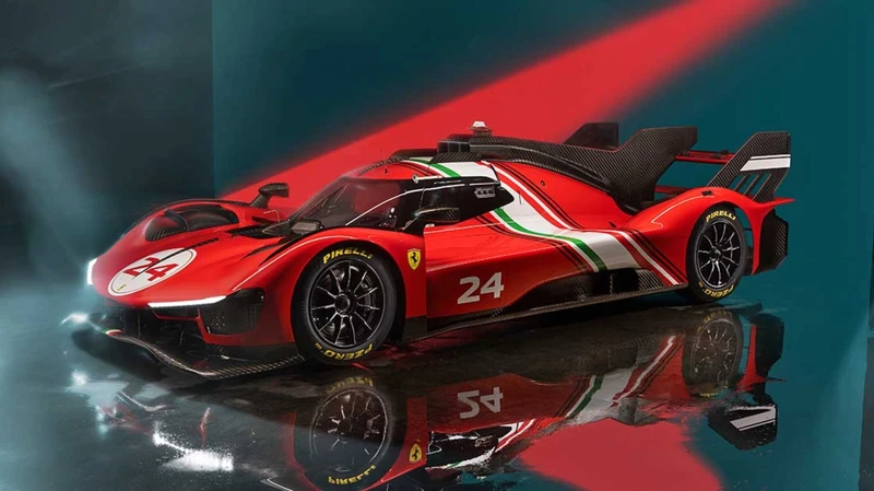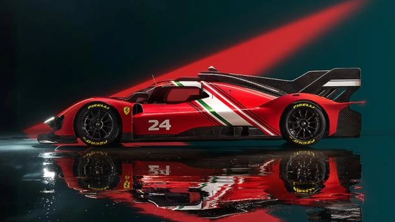 Este es el Ferrari 499P con el que los pilotos Alessandro Pier Guidi, Antonio Giovanazzi y James Calado ganaron las 24 Horas de Le Mans en el 2023.